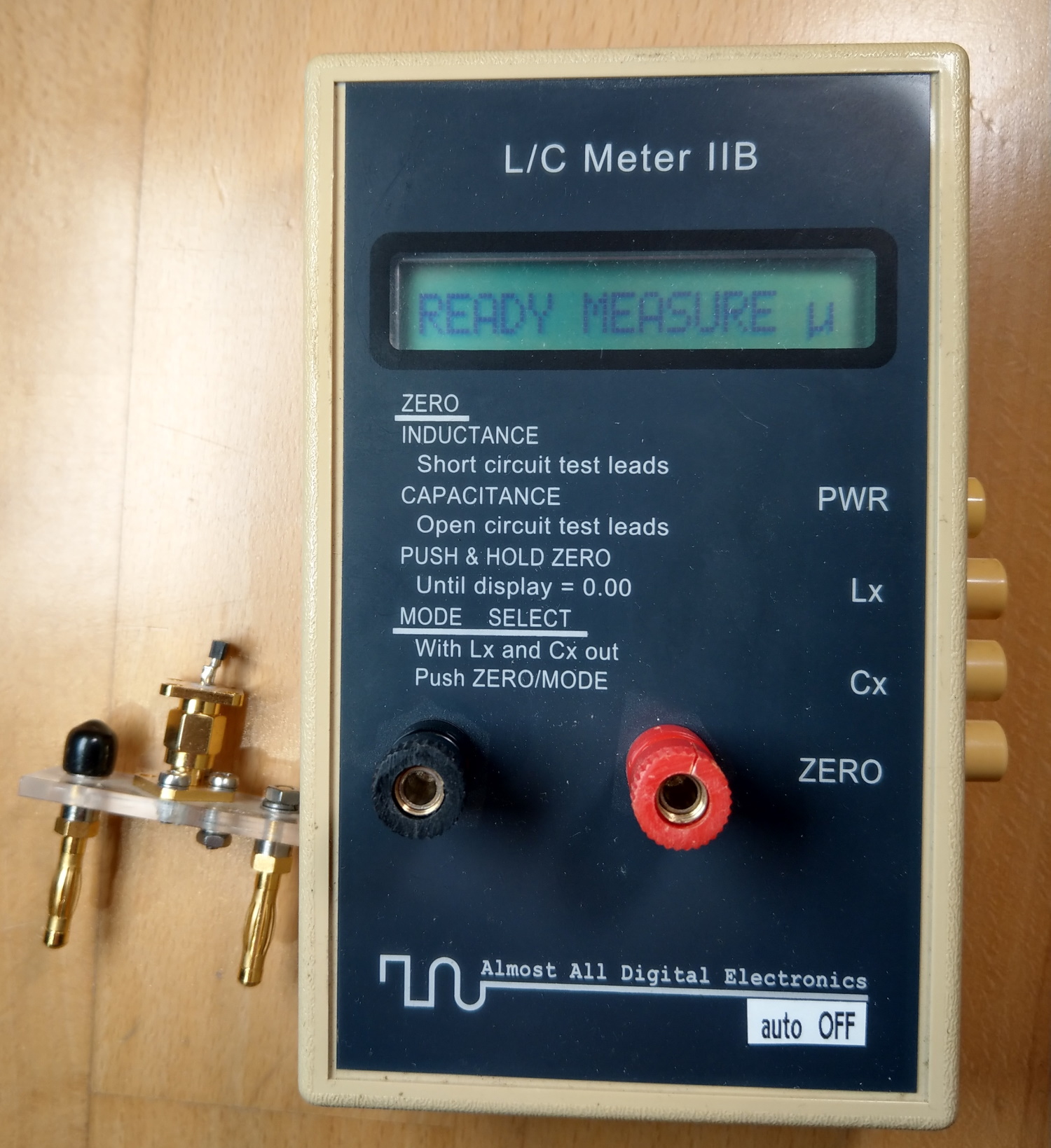 L/C Meter AADE L/C Meter IIB. Sehr genaues Messgerät um Kapazitäten und Induktivitäten messen zu können. Mit selbstgebauten Messausatz für kleine Bauteile, 30€